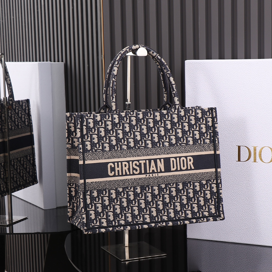 large D*or book tote black D*or oblique embossed calfskin 16.5 x 14 x 7.5 inches